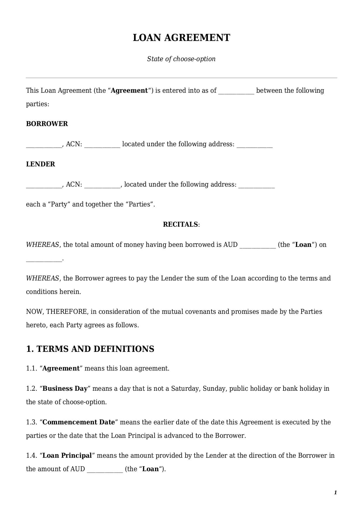 Indeed, a loan agreement document template is one of the most frequently used legal documents in Australia. Using this template is suitable when: