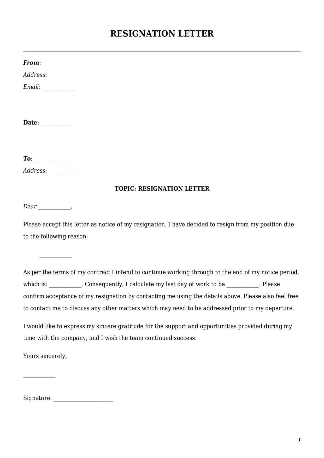 Last but not least, a professional resignation letter template shall also specify the employee’s last working date.