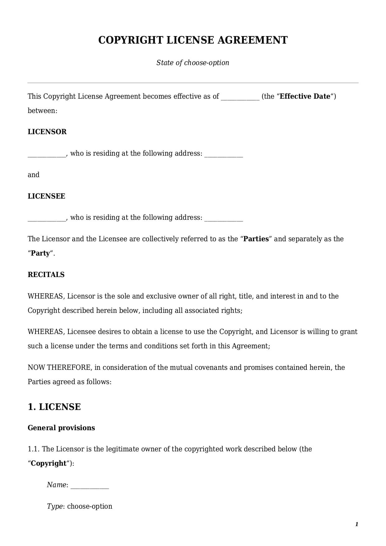 The present template could be customized for various situations, including copyright license agreements for music, songs, movies, designs, software, photos, and many more.