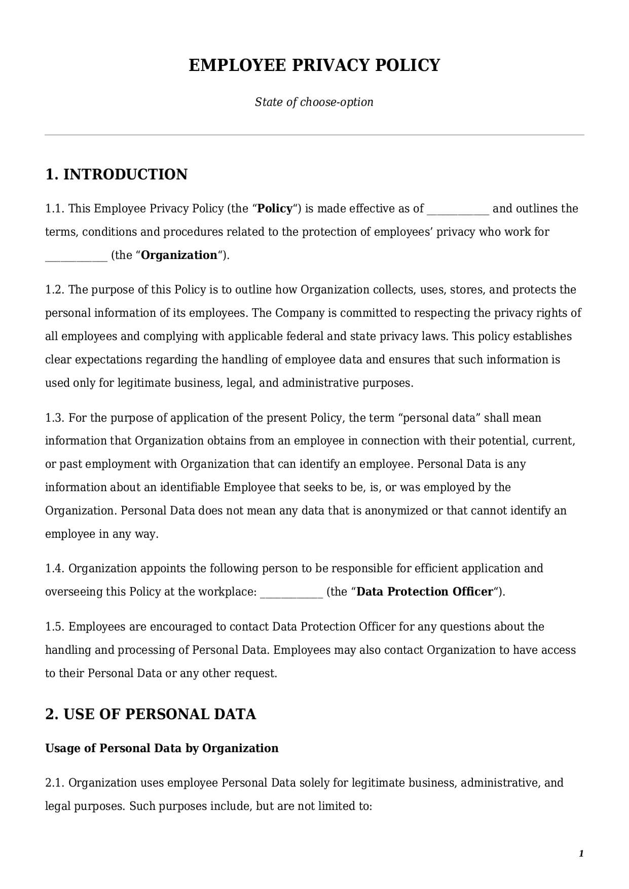 - Select a template’s format – Employee Privacy Policy Template PDF or Word.