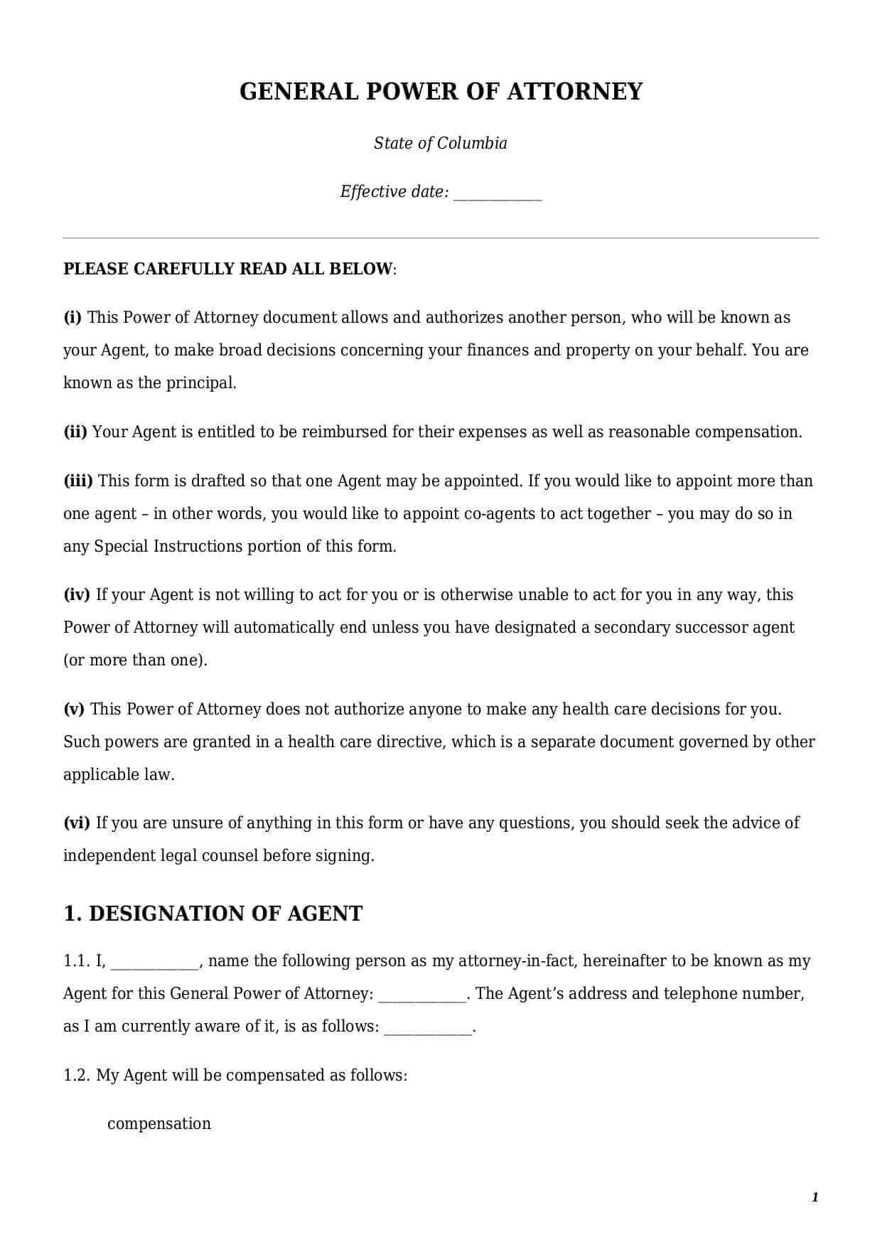 The present general power of attorney sample could be customized for all 50 states, including the District of Columbia.