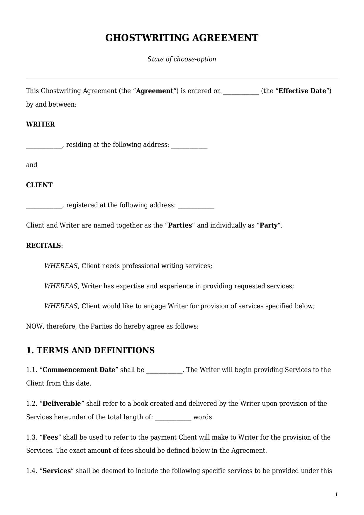 A ghostwriting contract is a special type of general services agreement that sets up a legal framework for cooperation between the client and the writer.