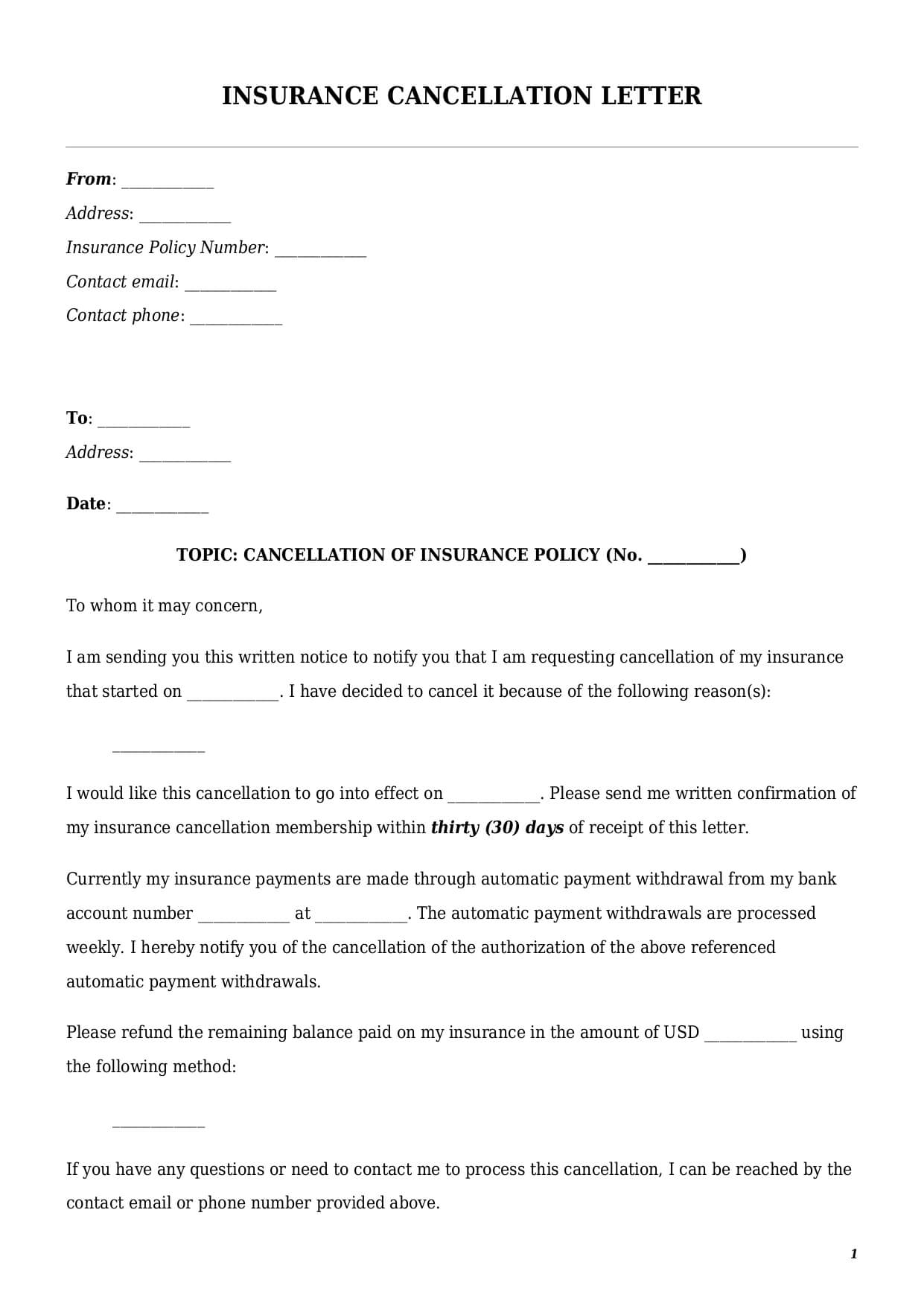 Insurance Cancellation Letter