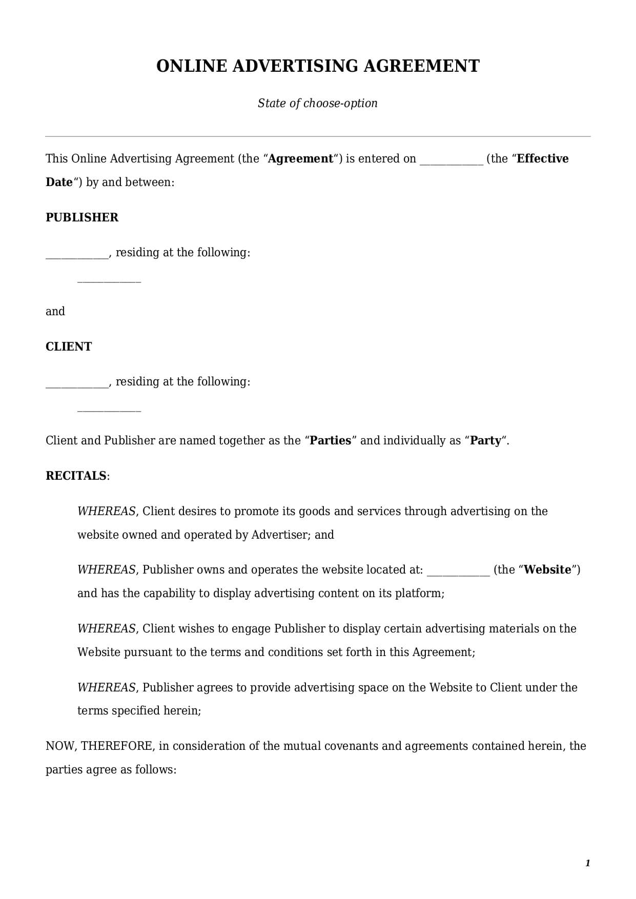 How to draft an online advertising agreement template?
