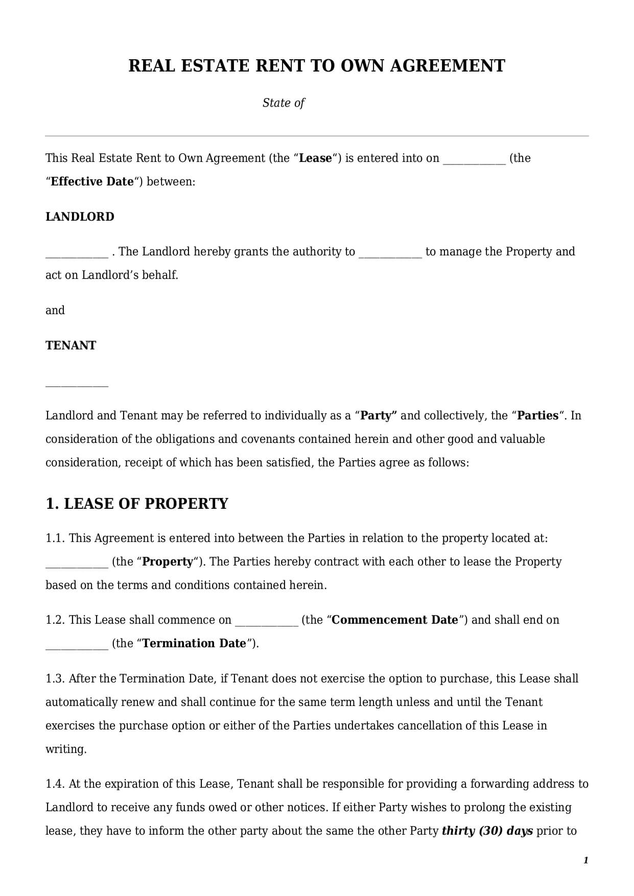 Real Estate Rent to Own Agreement