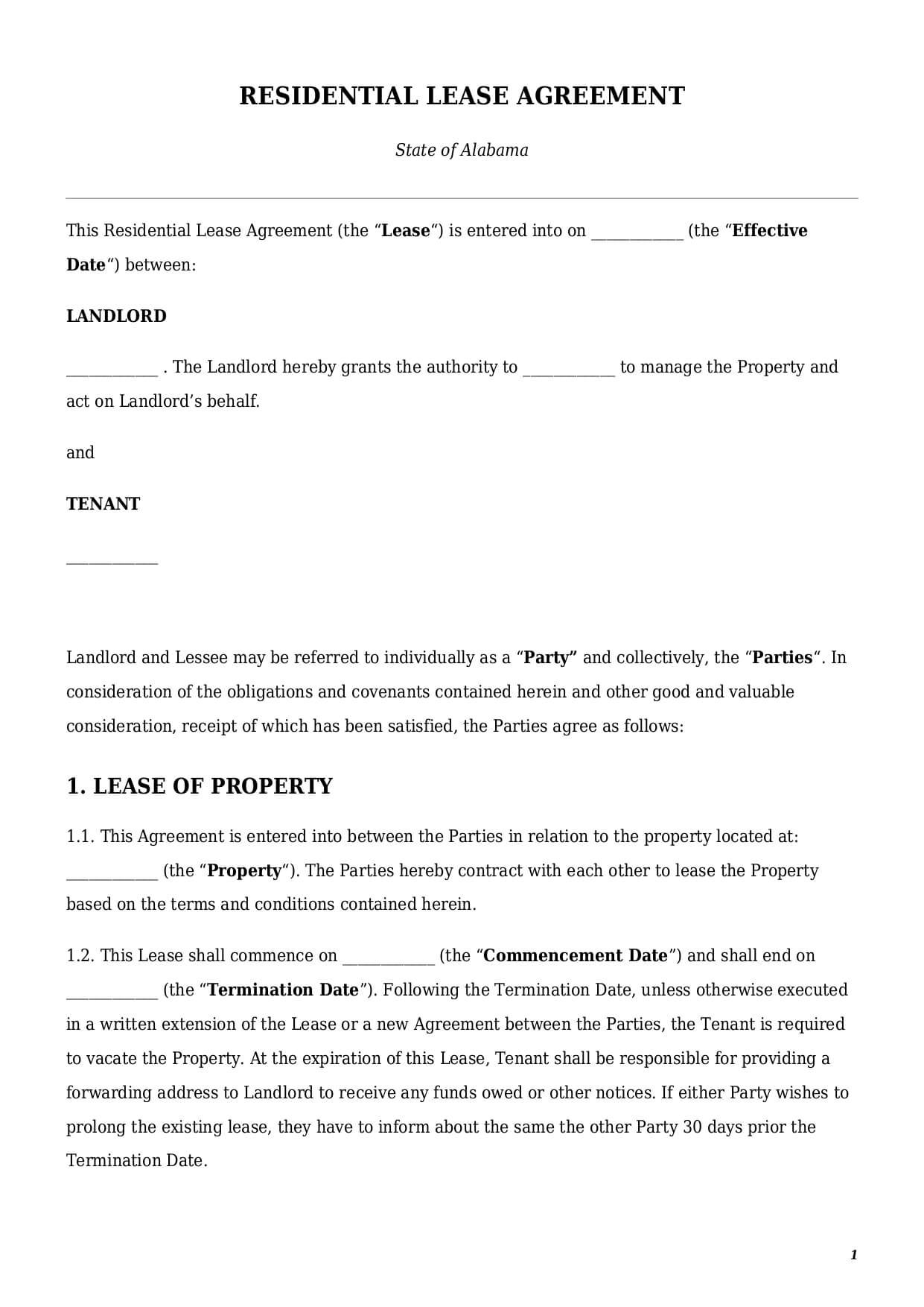 A residential lease agreement template is being created between the owner, known as a landlord, and a tenant (i.e., a person who wishes to live in a rented property). A landlord under the residential lease can be an individual or a company, while a tenant should always be a physical individual. It is a common practice when a residential lease agreement is signed by a management company that acts on behalf of a landlord. This is especially the case if a landlord does not have time to deal with tenants or has several properties under administration.