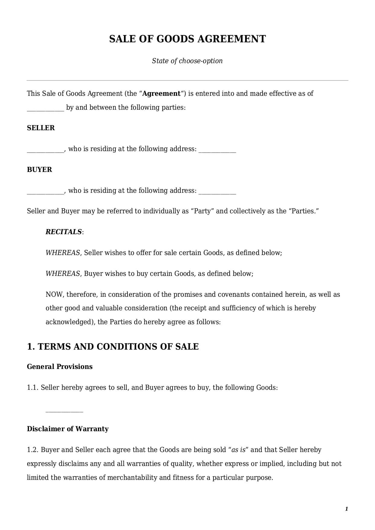 There is no required format or list of clauses parties have to include in the text of a sale of goods agreement. The final wording largely depends on the purpose of the transaction, types of goods, and other factors. However, there is a list of clauses without which a sales contract cannot become a complete legal document:
